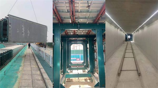 廊道滑模的特點就是取消了固定模板,變固定死模板為滑移式活動鋼模,從而不需要準備大量的固定模板架設技術,僅采用拉線、激光、聲納、超聲波等作為結構高程、位置、方向的參照系。一次連續施工完成條帶狀結構或構件。
